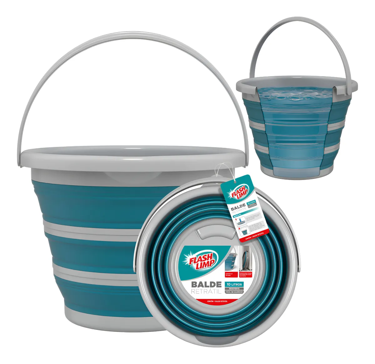 Balde 10L Flash Limp – Dobrável, Retrátil e Multiuso!